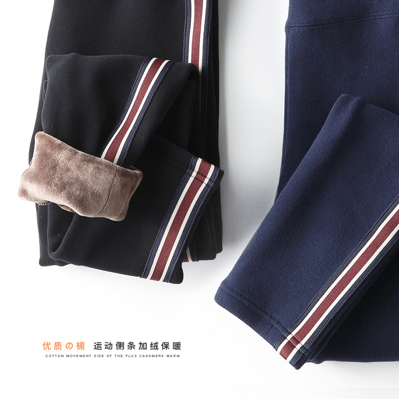 秋冬季保暖女褲韓版側邊條加絨打底褲女士加厚高腰顯瘦長
