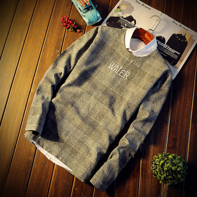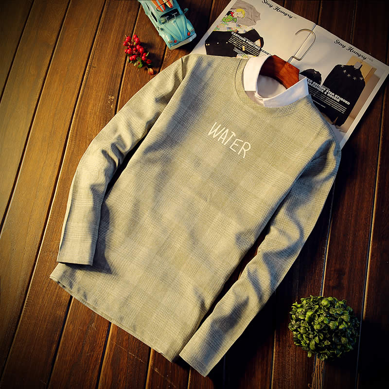 2017新款長袖T恤潮流修身時尚秋裝男裝 T恤圓領大碼男