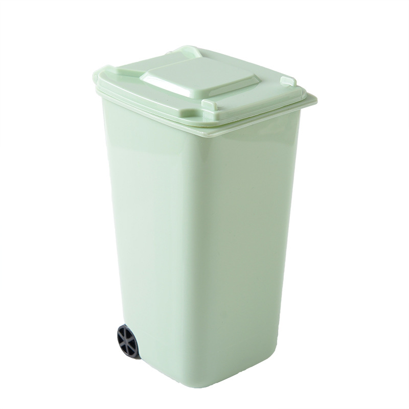 / 滑輪清潔車造型桌面垃圾筒便攜式帶蓋文具化妝品多功能迷你收納筒