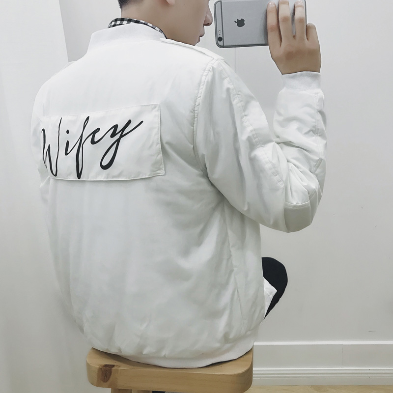 / 新款男裝韓版后背印花棒球領字母男士短款棉衣外套