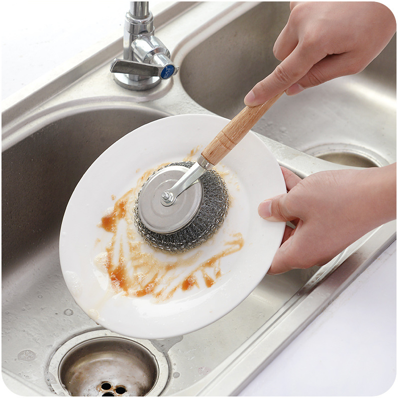 / 鋼絲球可拆木柄廚房鍋鋼絲長柄鍋刷不粘油清潔死角不臟手洗碗鍋刷