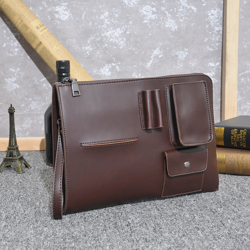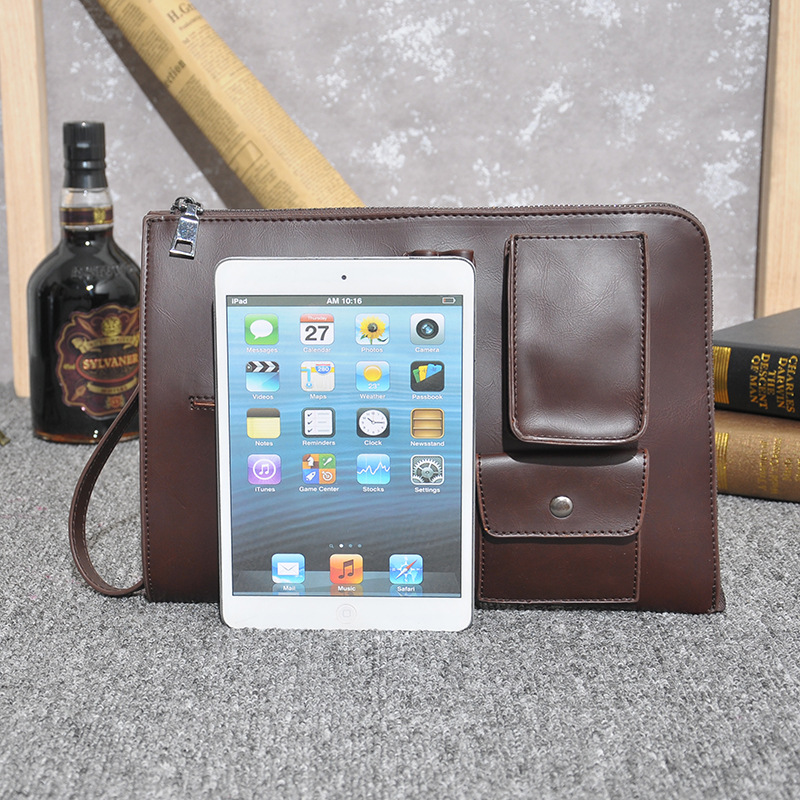 瘋馬皮PU手包男包新款韓版復古男士手拿包潮流休閑文件包IPAD包潮