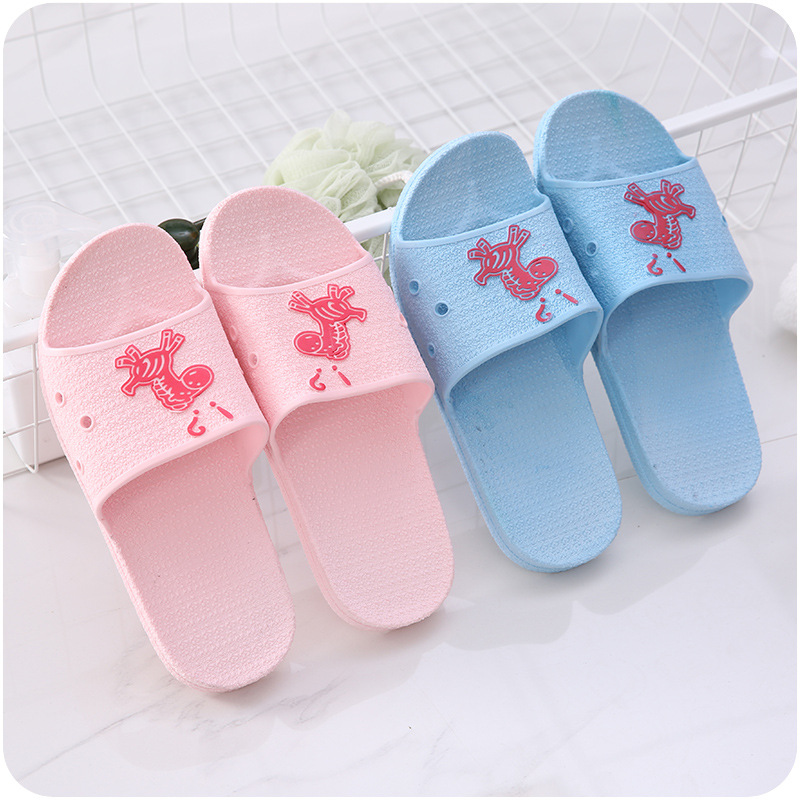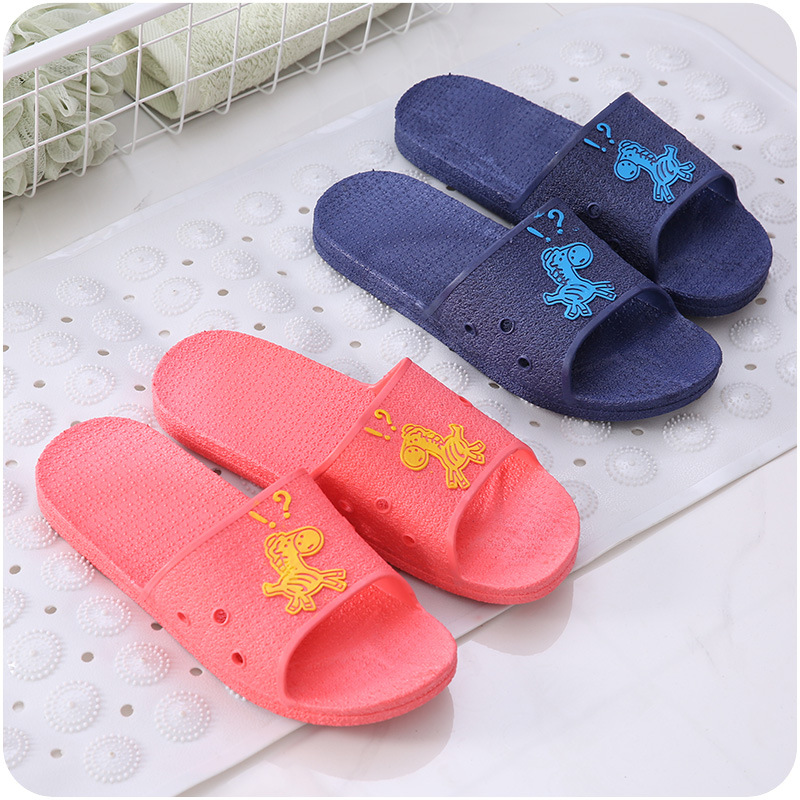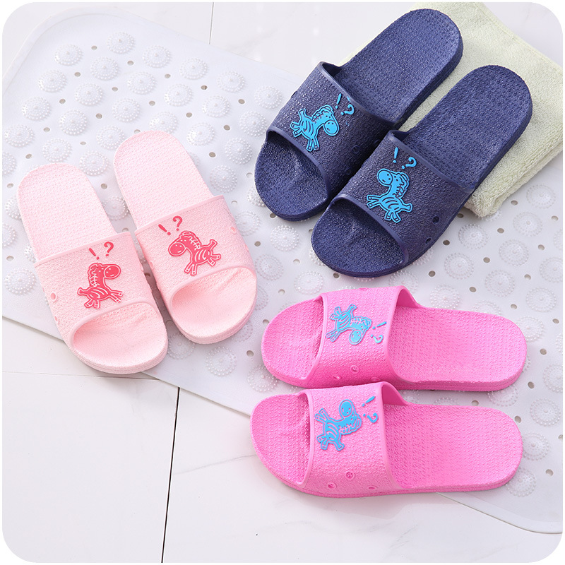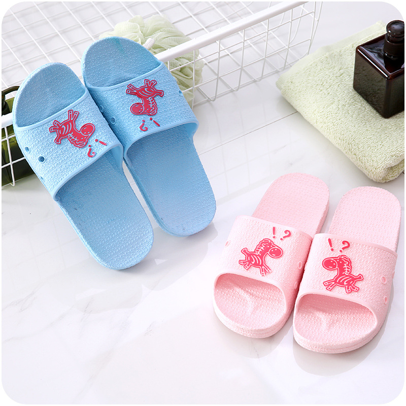 居家軟底涼拖鞋卡通防滑可愛小馬印花情侶拖鞋男女士浴室防滑鞋拖