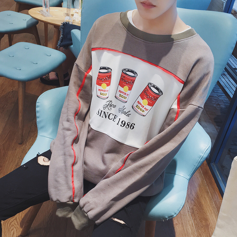 / 秋裝新品可樂卡通印花韓版小清新圓領套頭男士衛衣
