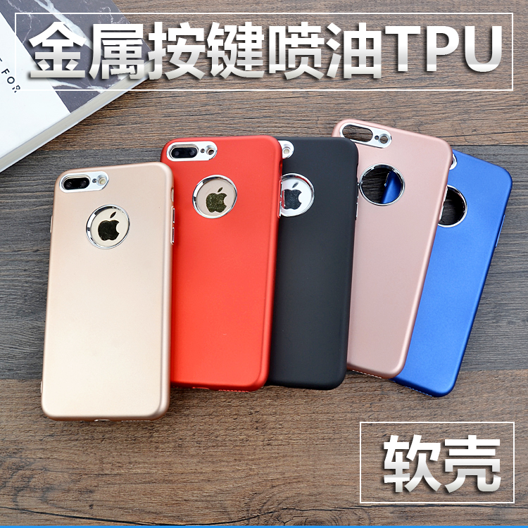 金屬按鍵噴油TPU簡約iphone7 蘋果6 plus手機殼個性創意新款