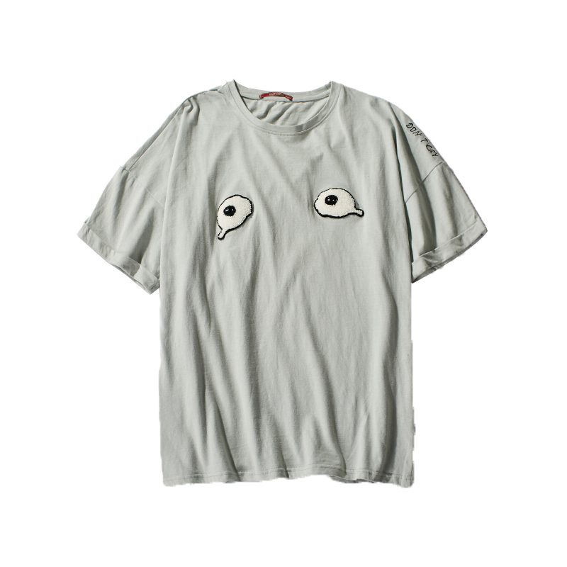 卡通印花半截袖韓版潮學生情侶裝夏季寬松短袖T恤男