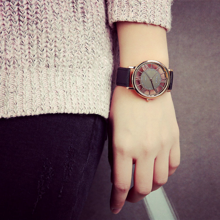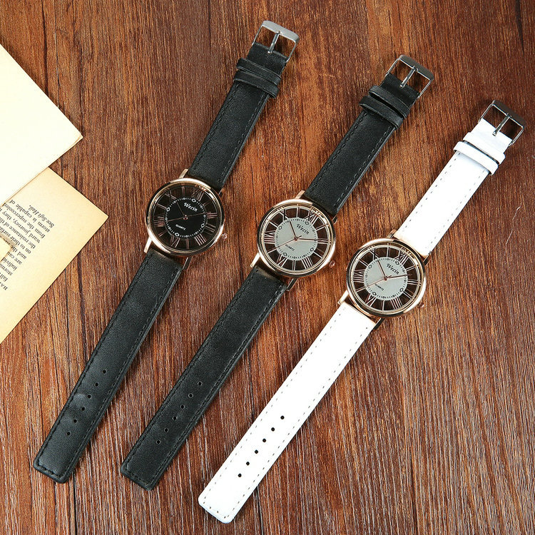 韓國ulzzang原宿風黑白男女情侶手表一對韓版潮流鏤空簡約中學生