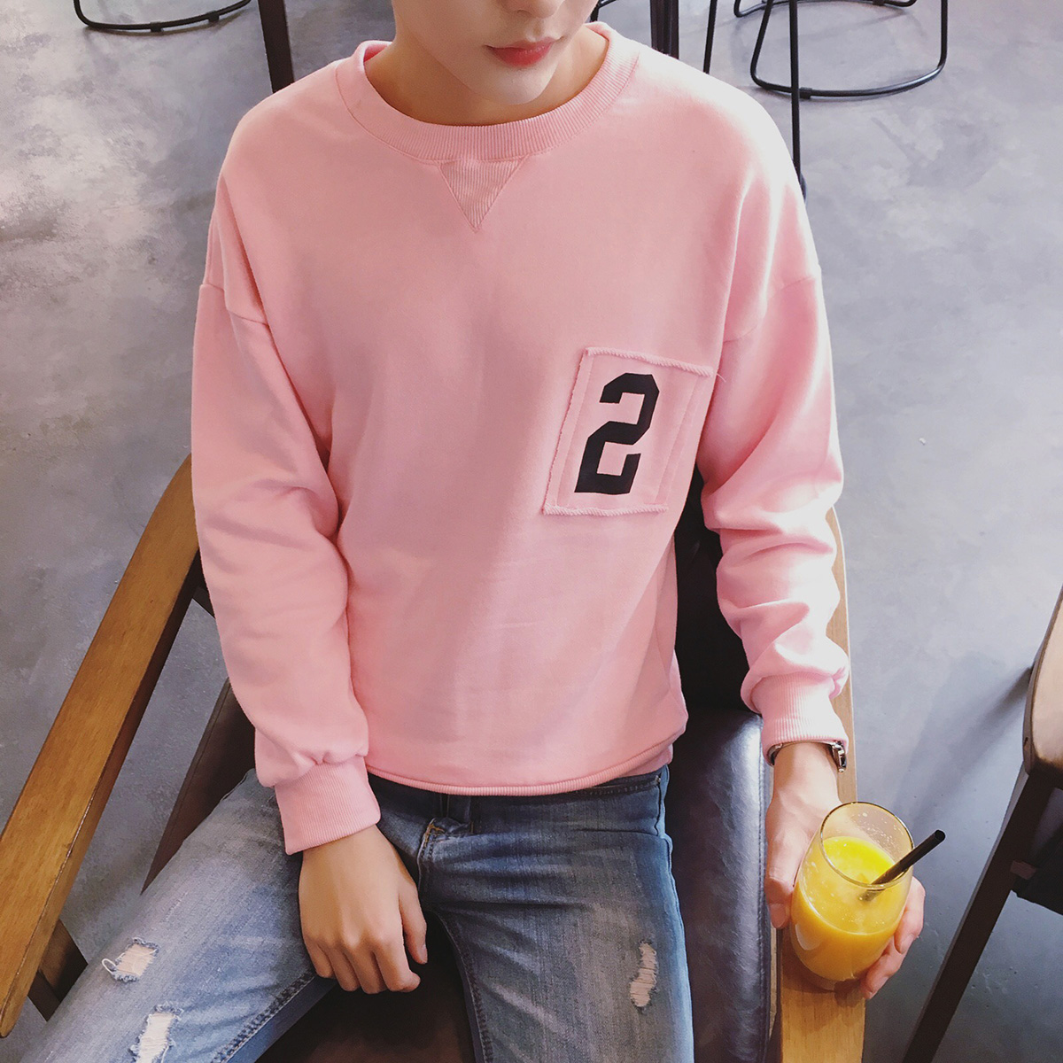 秋季新款韓版男長袖外套學生男士圓領印花套頭衛衣