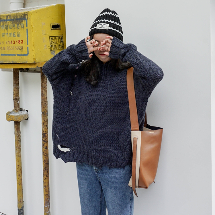 真的是超級個性的不規則破洞毛衣哦