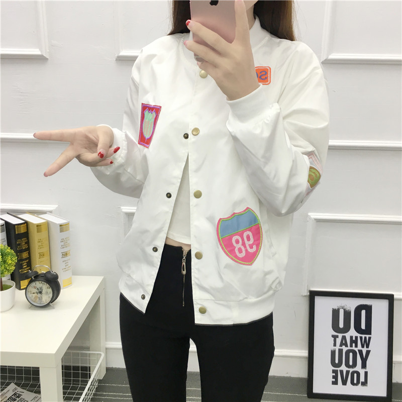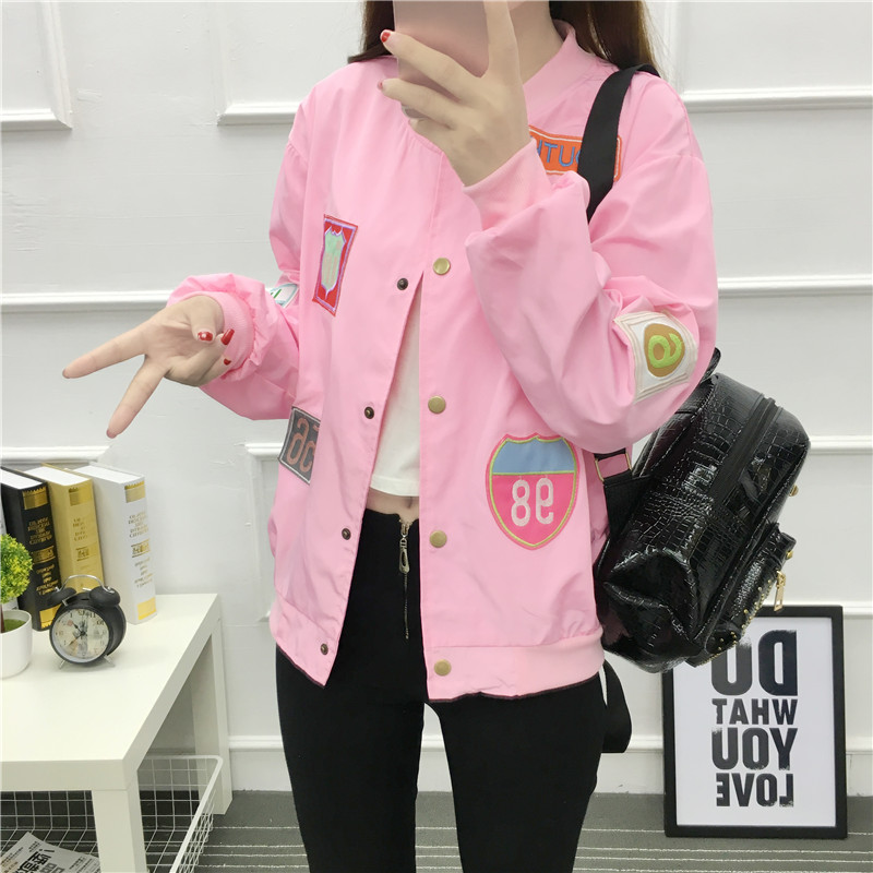 / 女裝棒球服春秋外衣韓版bf原宿風字母寬松百搭學生短外套夾克衫潮