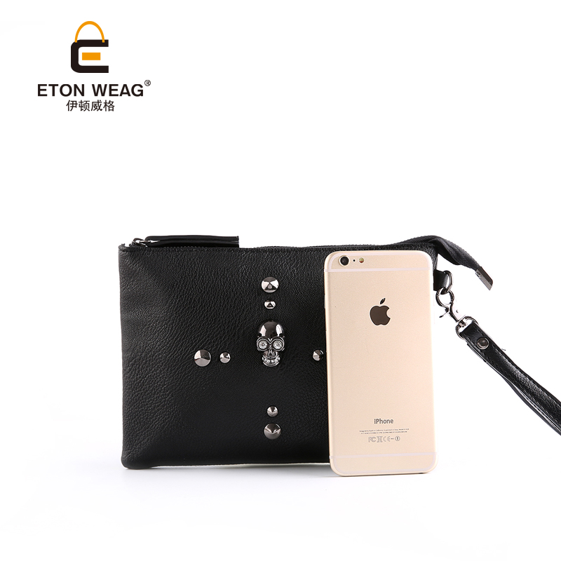 韓版鉚釘手拿包鬼頭手包手抓手包晚宴包男女時尚小包手機包潮