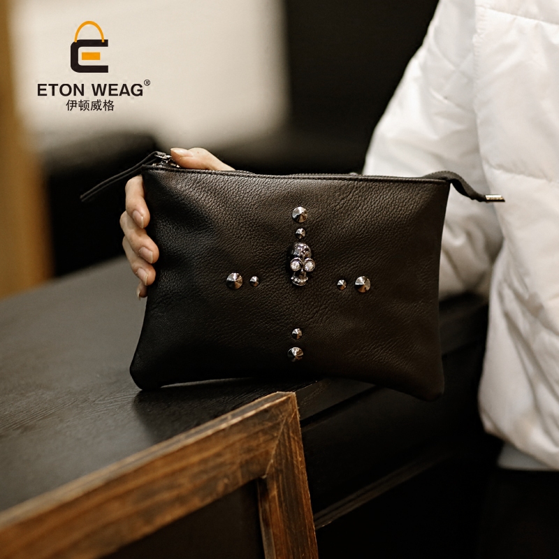 / 韓版鉚釘手拿包鬼頭手包手抓手包晚宴包男女時尚小包手機包潮