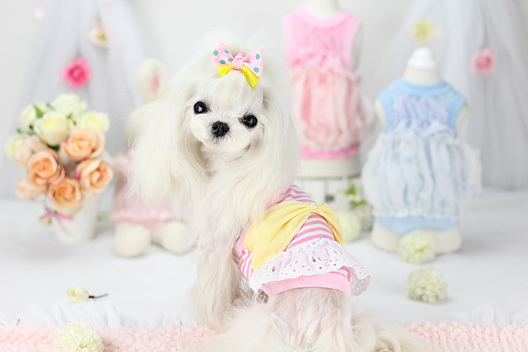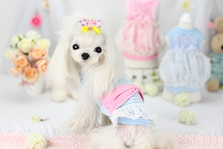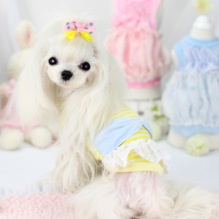 休閑の小清新條紋腰封蝴蝶結背心裙~寵物春夏裝 狗狗背心泰迪T恤