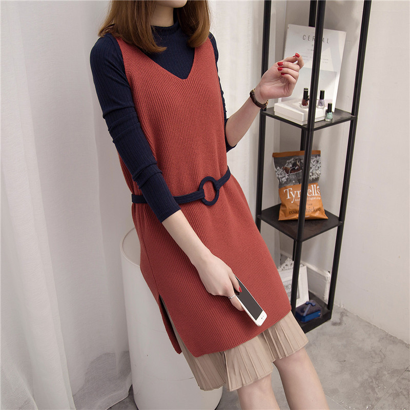 女裝春裝新款潮寬松韓版兩件套針織衫套頭毛衣女中長款背心裙