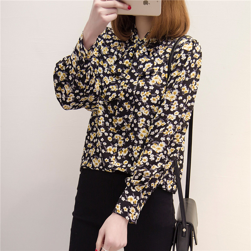 / 春裝新款潮襯衣女韓版百搭清新甜美女裝上衣學院風碎花襯衫