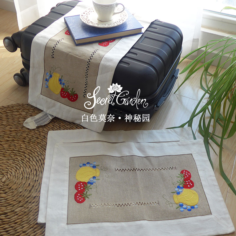 【包含】一件桌旗,兩件餐墊,可分開單獨購買,也可以購買三件組【質地】純棉【工藝】手工抽絲加貼布繡花鑲邊,拼色包邊【色調】本色底如圖,繡花色如圖【尺寸】餐墊為45*27cm,桌旗為28*90cm(手工隨機抽樣測量,恐有些微尺寸誤差)