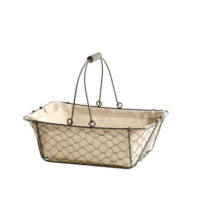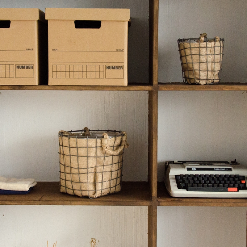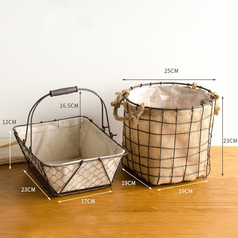 日式創意鐵絲方形收納筐雜物整理筐居家鐵制復古收納籃