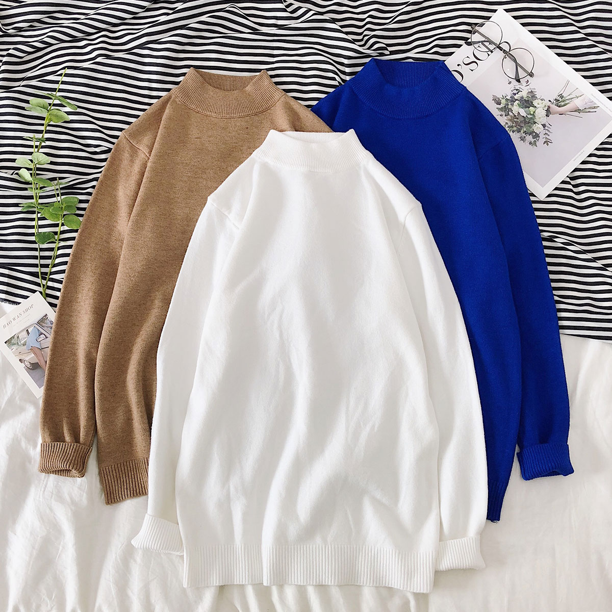 文藝男女店純色男士毛衣韓版針織衫2018新款潮流套頭男冬季半高領