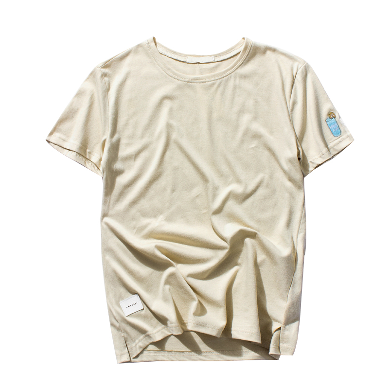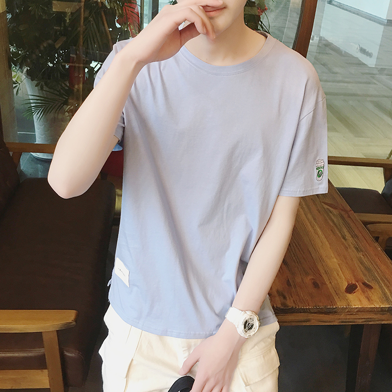 / 夏裝下擺開叉港風寬松男士圓領短袖T恤半袖潮