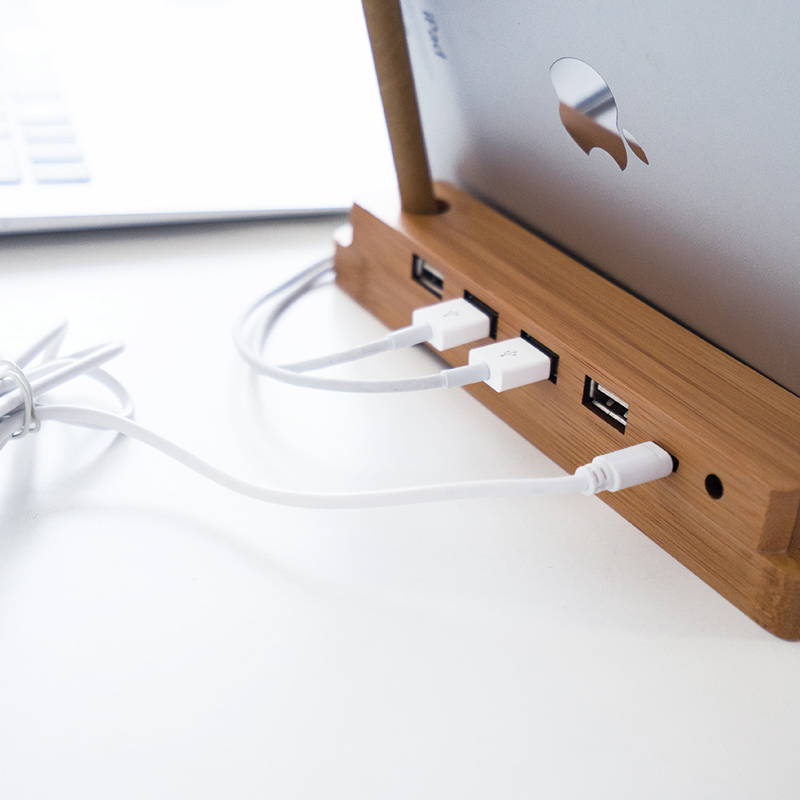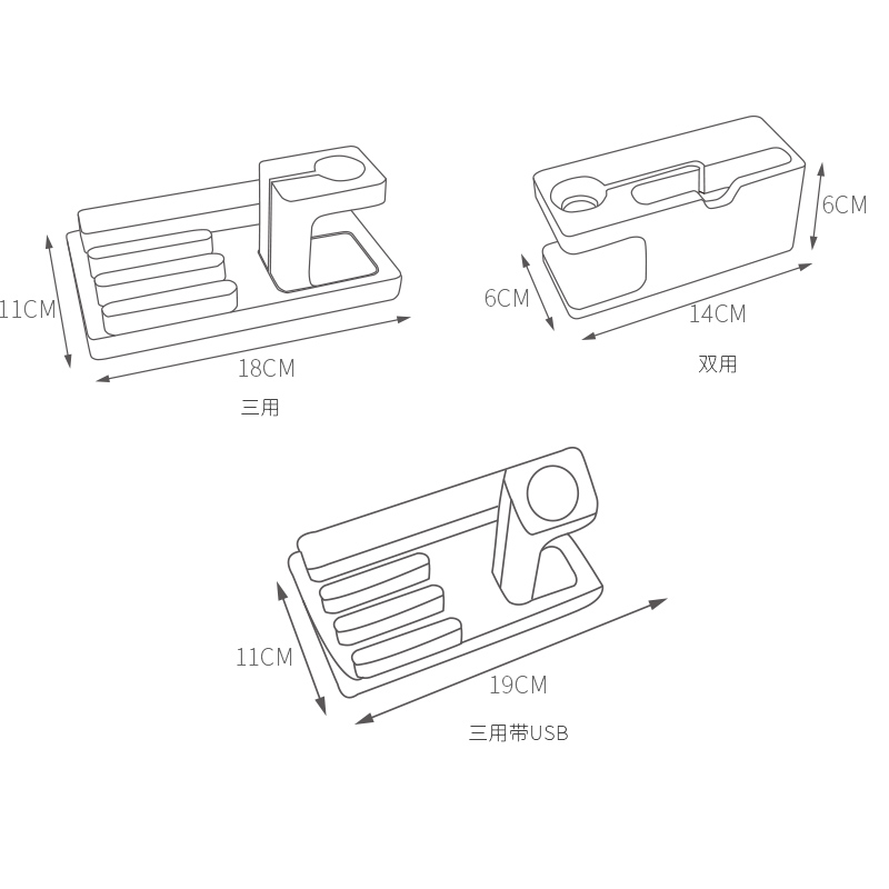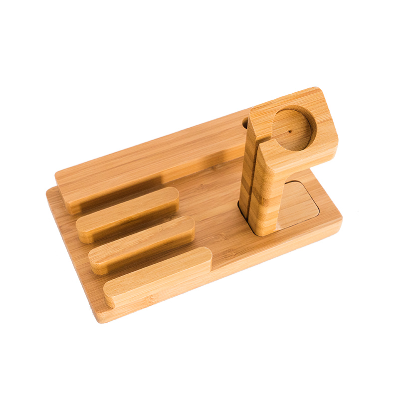 環保竹制手機支架帶USB分插口可充電智能手表桌面充電座
