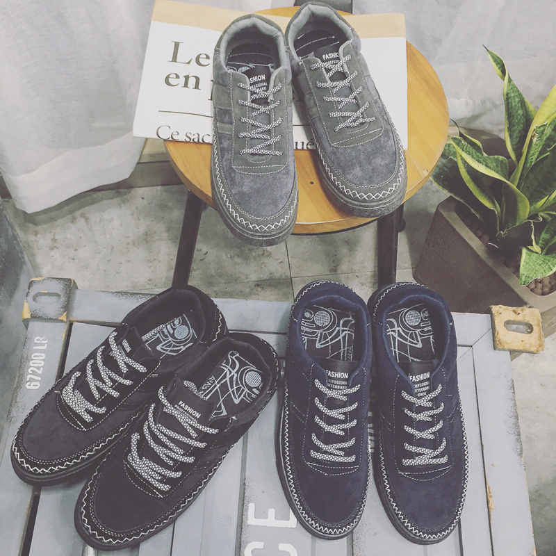 男裝韓版低幫休閑男鞋磨砂系帶運動板鞋保暖男鞋