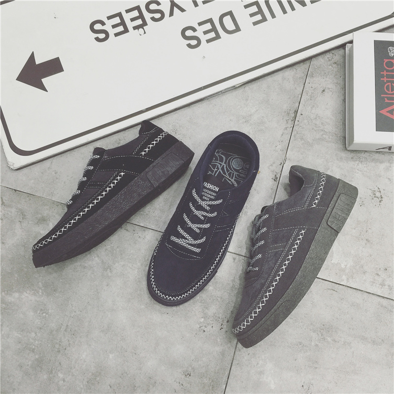 / 男裝韓版低幫休閑男鞋磨砂系帶運動板鞋保暖男鞋