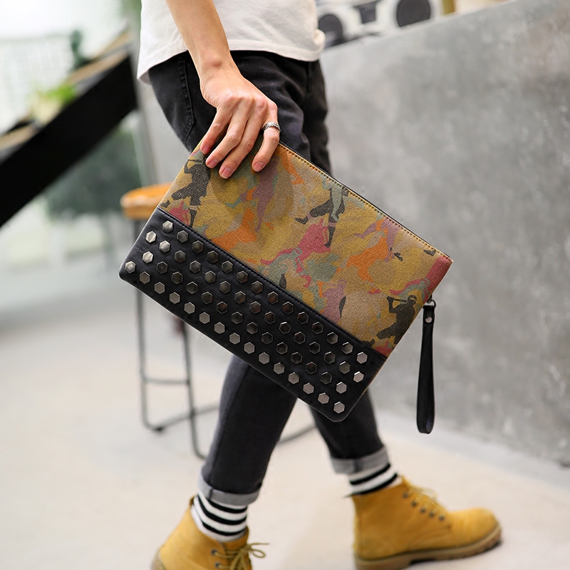 / 迷彩人韓版男包潮時尚信封包歐美休閑男士手包迷彩手抓包單肩斜跨