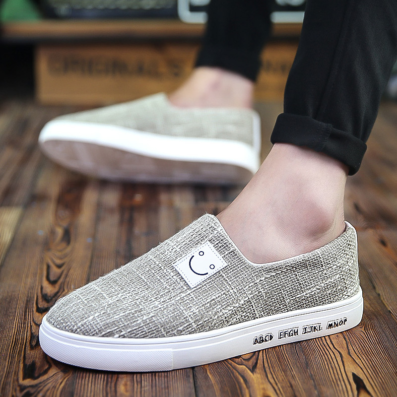 / 新款韓版潮流男鞋子透氣帆布板鞋男學生秋季潮鞋亞麻懶人鞋