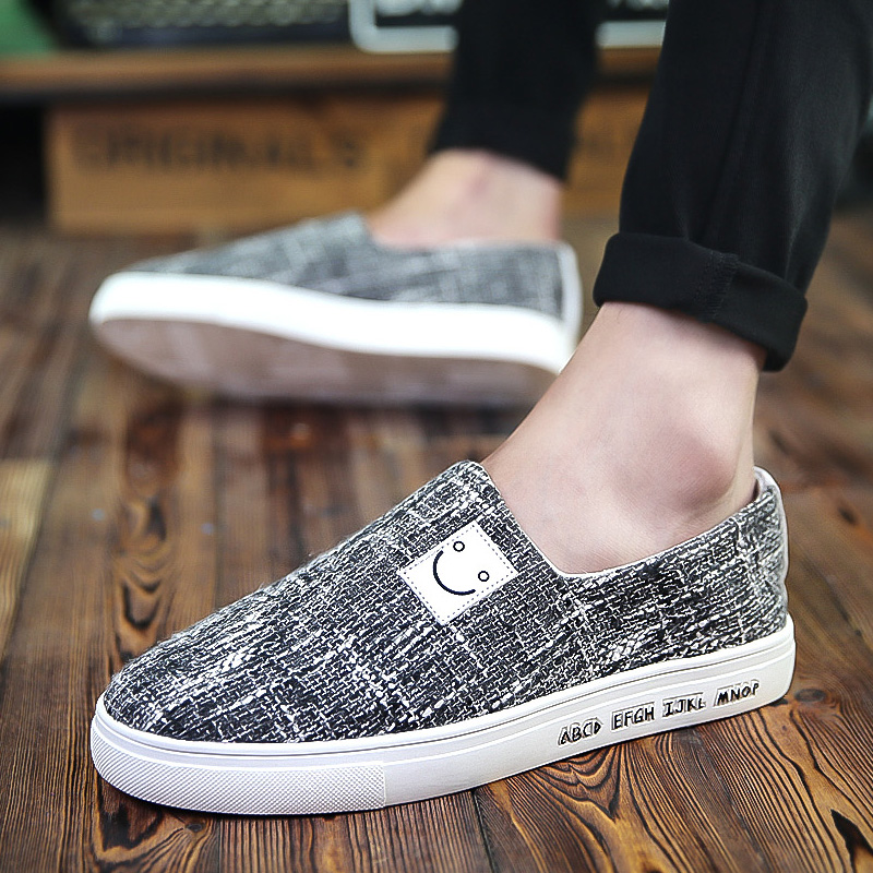 新款韓版潮流男鞋子透氣帆布板鞋男學生秋季潮鞋亞麻懶人鞋