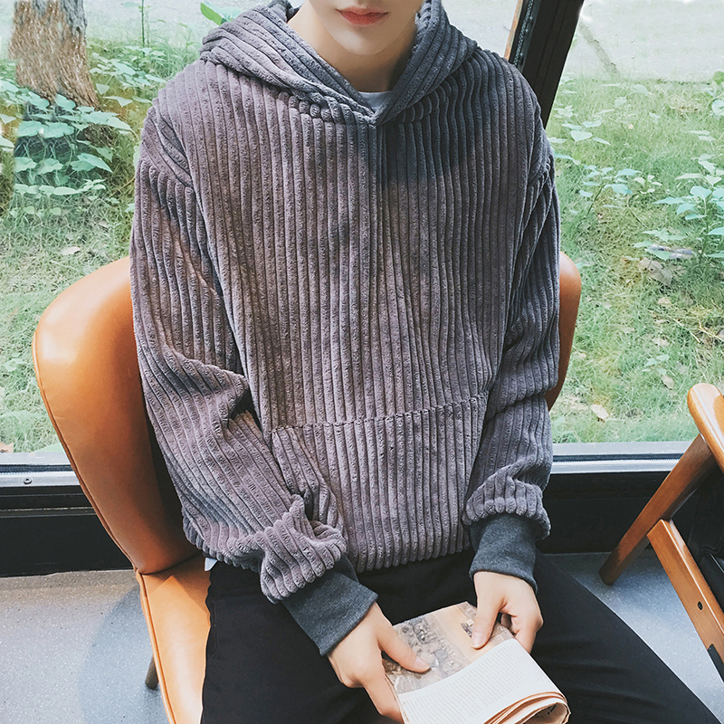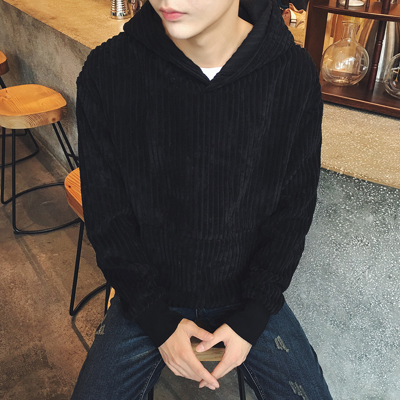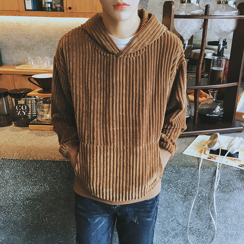 / 秋季新款日系復古純色男士燈芯絨修身連帽衛衣外套