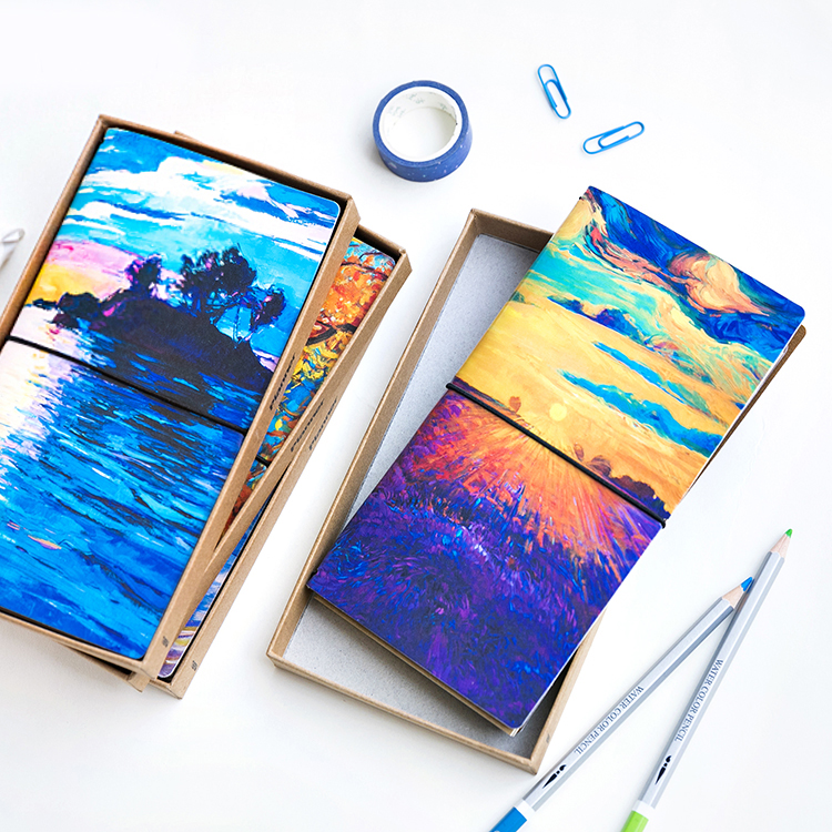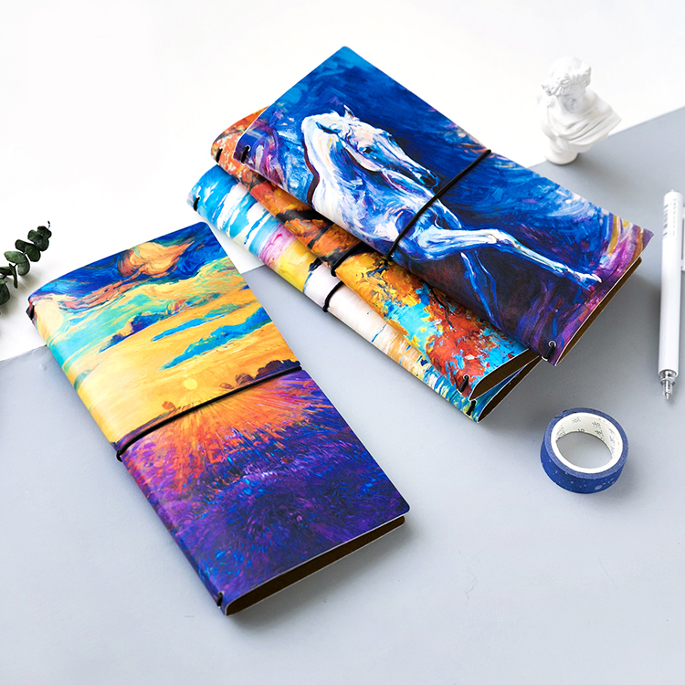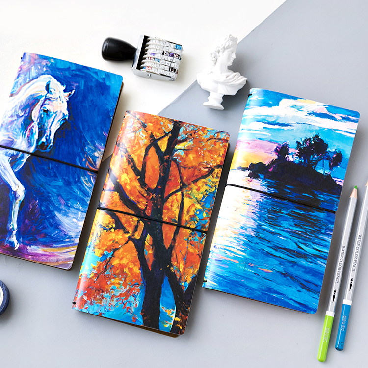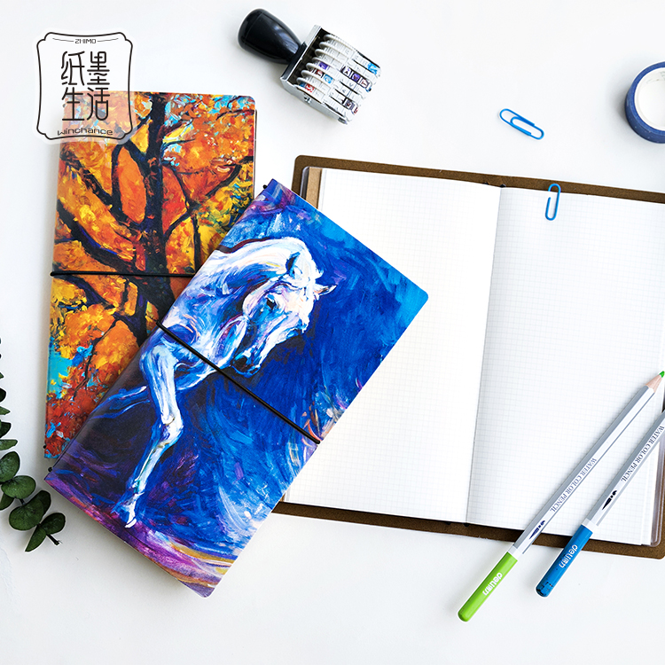 云木雜貨 創意TN旅行長款手帳本 藝術油畫風格PU皮記事本手賬本