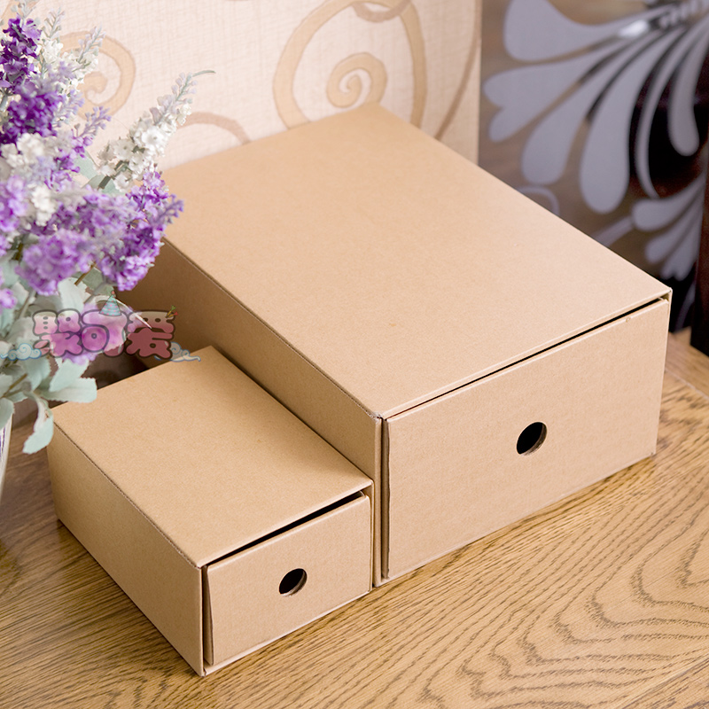 zakka風diy牛皮紙居家雜物抽屜式收納盒辦公桌面整理盒