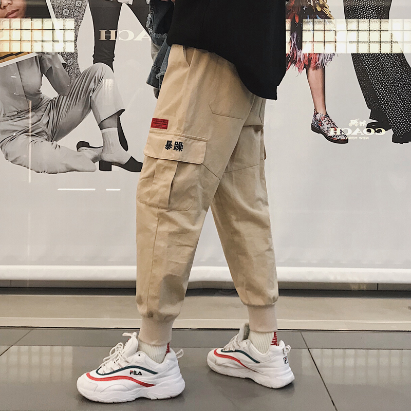 / 休閑褲束腳褲秋季男裝長褲潮流寬松褲子男士九分褲青少年工裝褲男