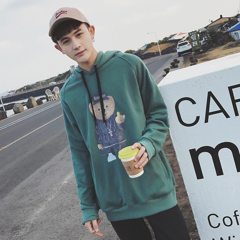 男裝17新款韓版卡通小熊圖案連帽套頭男士衛衣外套