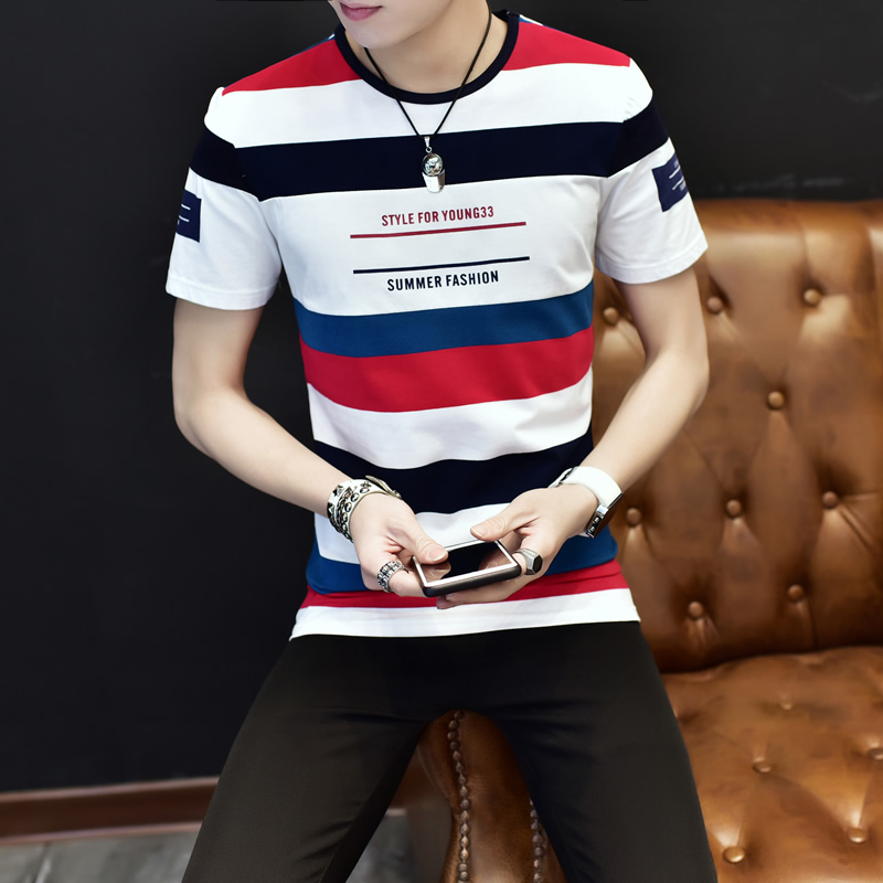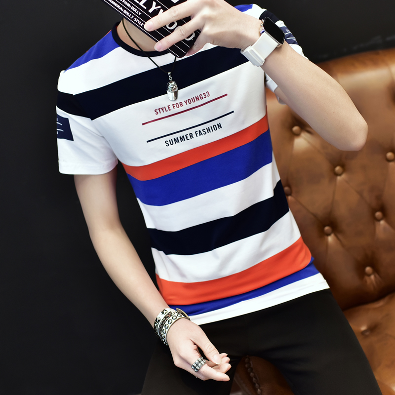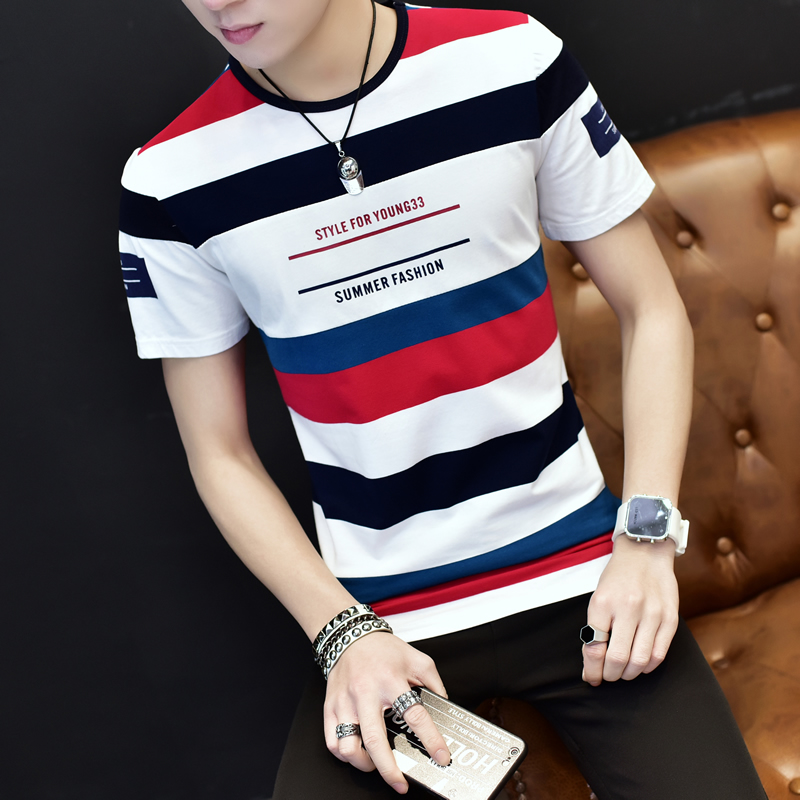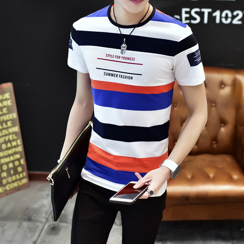 2017夏季新款韓版休閑短袖T恤大碼潮流時尚打底衫男