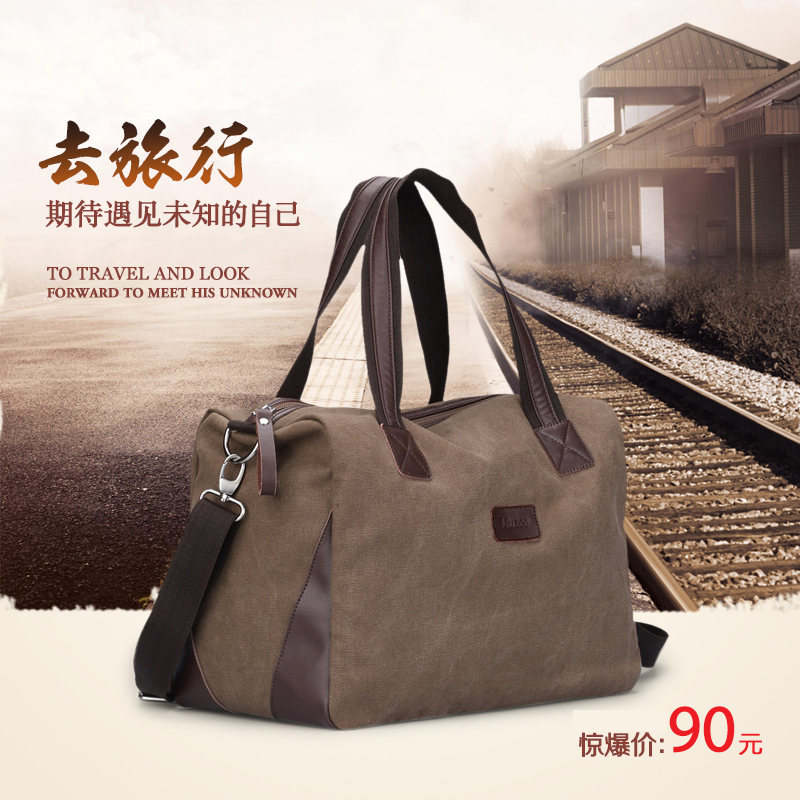 / 休閑帆布大包男女單肩手提旅行包行李包大容量旅游包