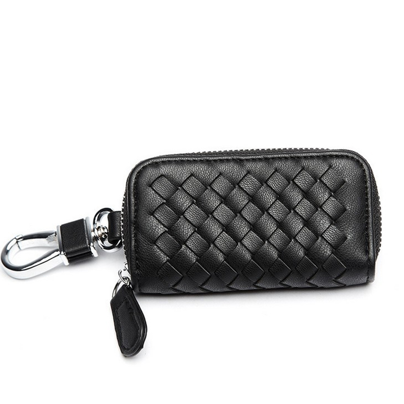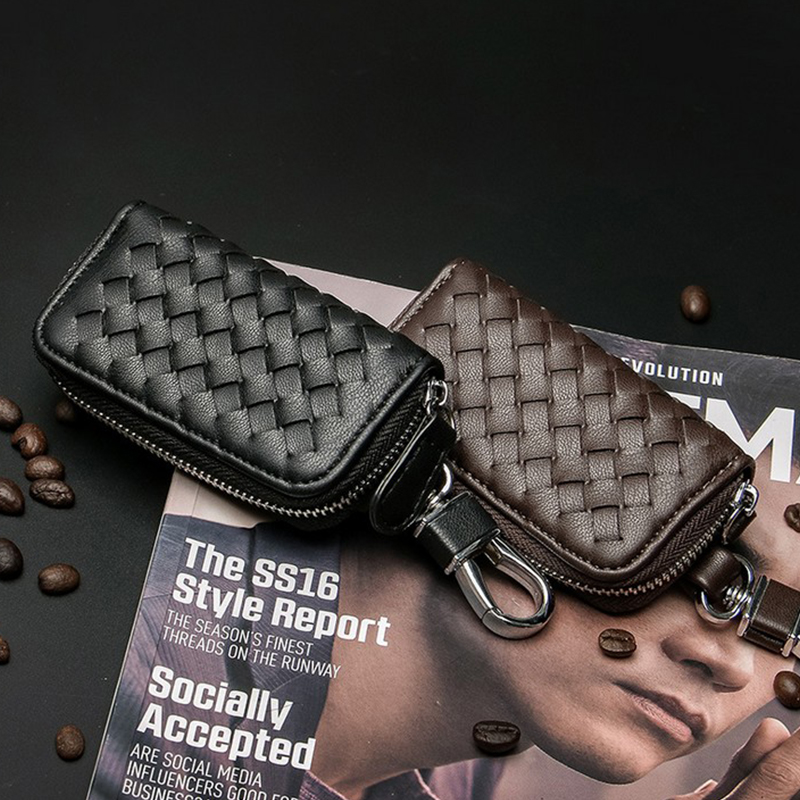 汽車鑰匙包 男女時尚小巧編織車鑰匙掛鎖包編織風格
