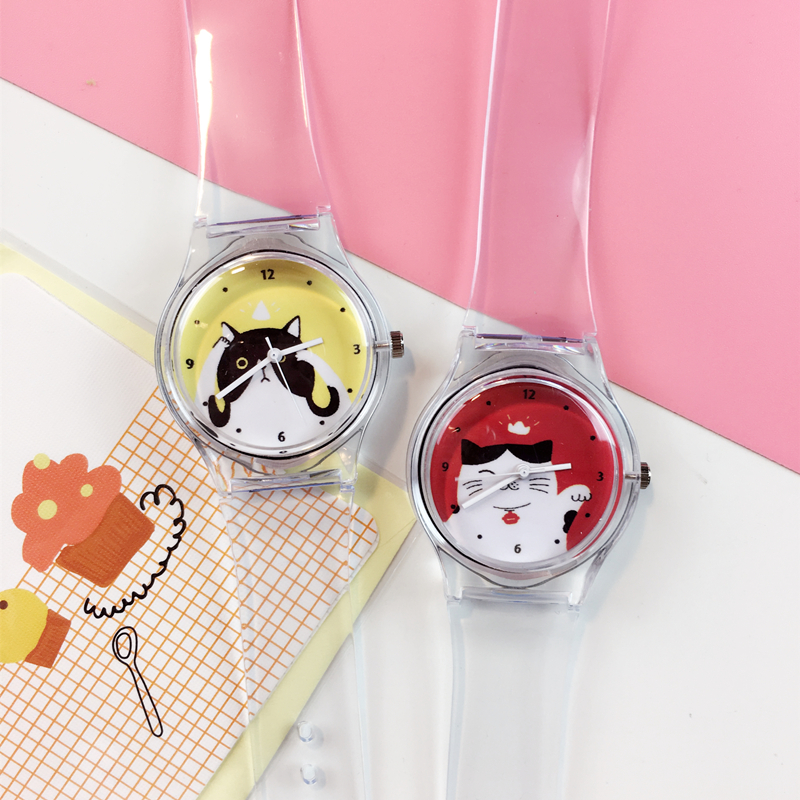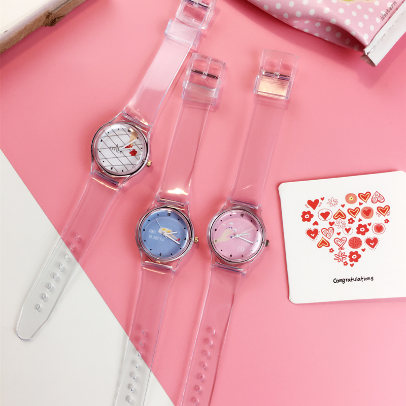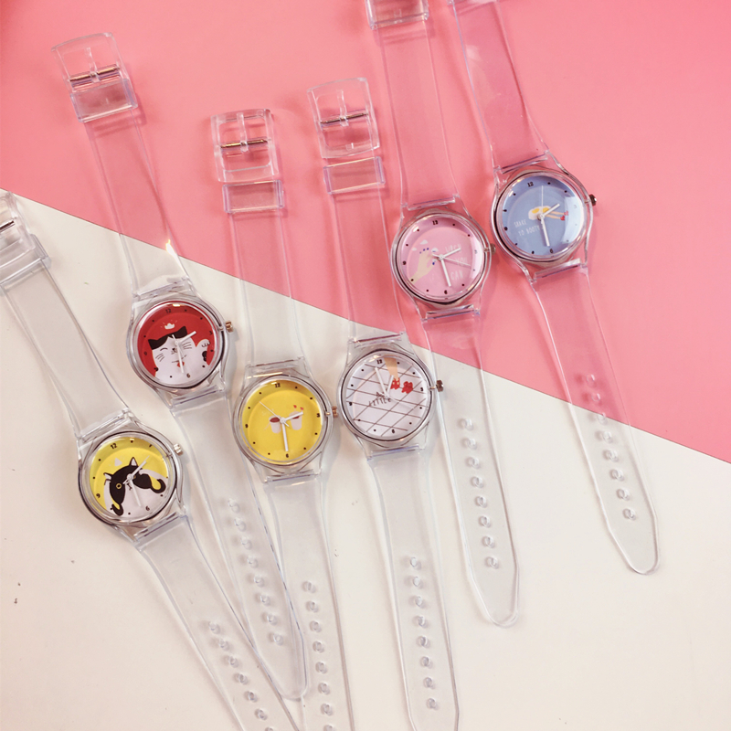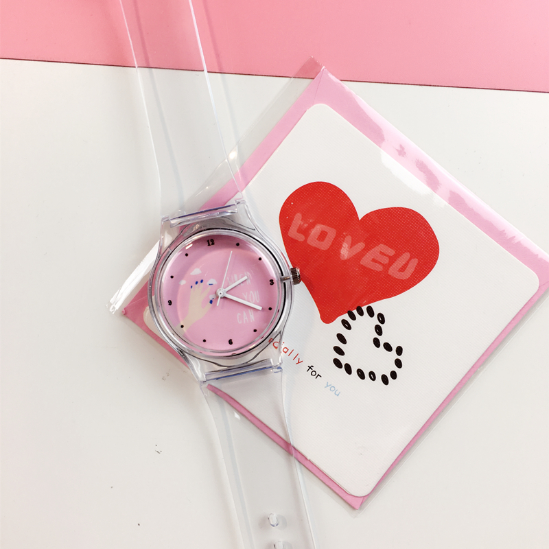 韓國ulzzang可愛卡通手足語透明表帶軟妹糖果色小清新女學生手表