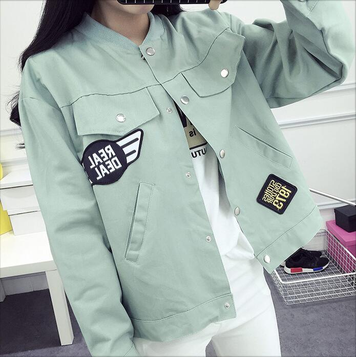 / 16韓版春秋新款學生寬松印花貼布工裝外套女學院風原宿BF大碼上衣