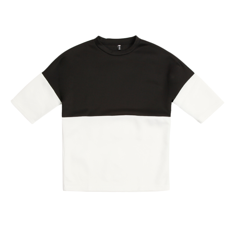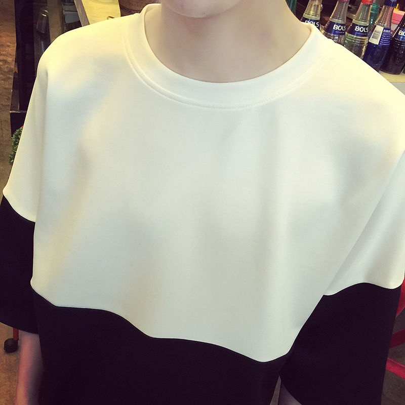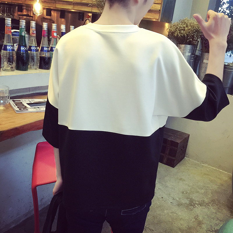 新款撞色拼接寬松落肩男士圓領五分袖T恤短袖