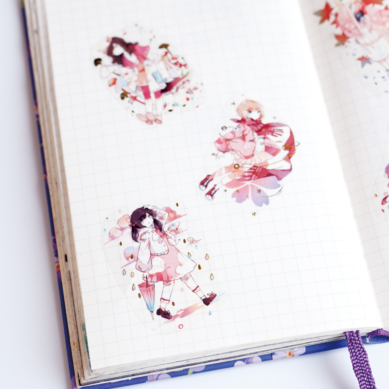 / 云木雜貨 甜美女孩和紙膠帶燙金特殊油墨白墨帶離型紙diy手賬貼紙