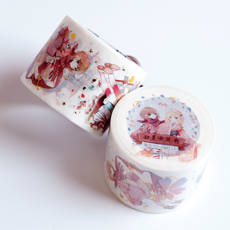 云木雜貨 甜美女孩和紙膠帶燙金特殊油墨白墨帶離型紙diy手賬貼紙