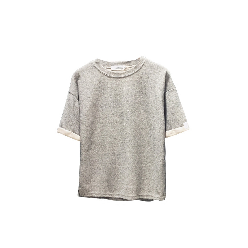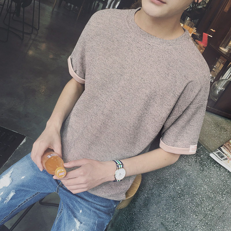 / 新品韓版港風寬松圓領純色卷邊袖子短袖T恤男
